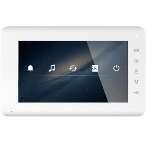 Монитор цветного видеодомофона 7 дюймов с сенсорными кнопками с поддержкой форматов CVBS (PAL / NTSC). Тонкий корпус 18мм со встроенным блоком питания.