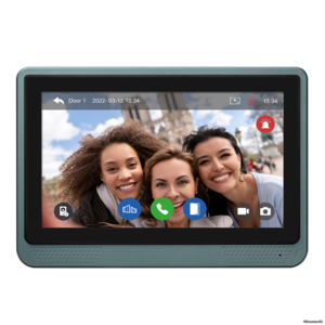 Комплект видеодомофона с 10" сенсорным дисплеем, функцией видеорегистратора, удаленным доступом со смартфона и считывателем магнитных ключей.