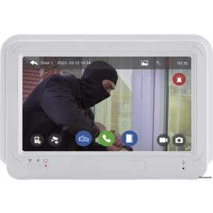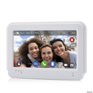 Комплект видеодомофона с 7" (17.78 см) дюймовым сенсорным дисплеем, функцией видеорегистратора, удаленным доступом со смартфона и считывателем магнитных ключей.